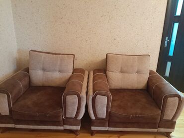 Klassik üslubda 3 parçalı yumşaq mebel dəsti: - 1 ədəd 3 nəfərlik divan - 2 ədəd geniş kreslo Rəng: qəhvəyi və açıq bej kombinasiya. Material: yumşaq parça üzlük, toxumalı dekor tikişləri və düy...