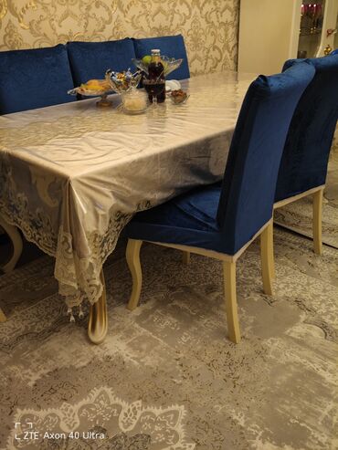 - Komplekt: Düzbucaqlı masa və ona uyğun bir neçə stul (şəkillərdə göründüyü kimi).