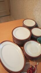 - Kənar hissədə zərif qızılı ornament və qırmızı haşiyə, süfrəyə zərif görünüş verir