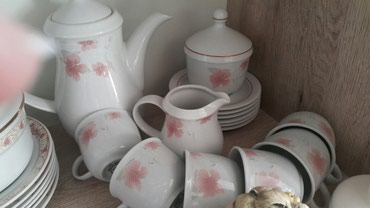 çay dəsti və qəhvə dəsti Dəstə çaydan, süd qabı, qənd qabı, fincanlar və nəlbəkilər daxildir. Almaniyadan alinib Istifade olmayib hec!!!