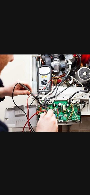 - Kombilərin təmiri: nasazlıqların diaqnostikası, qaz qovşağı, nasos, üçyollu klapan, fan, plomba, təzyiq və temperatura nəzarət elementləri, sensor və relelərin yoxlanması və dəyişdirilməsi