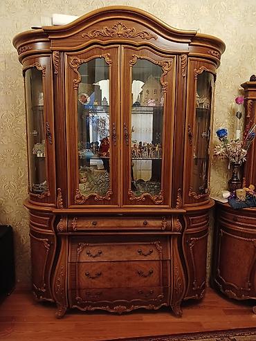 Klassik üslubda tam mebel dəsti Tərkibi: - Qonaq otağı üçün vitrinali bufet: üst hissədə şüşəli 4 bölmə, dalğalı dekorativ çərçivələr, aşağı hissədə 4 qapılı geniş saxlama bölməsi. Oyma taxta deta...