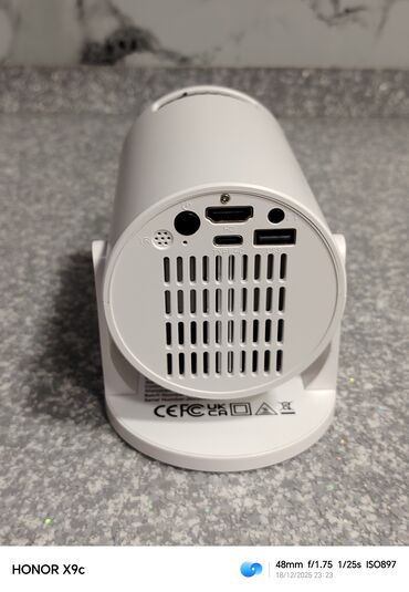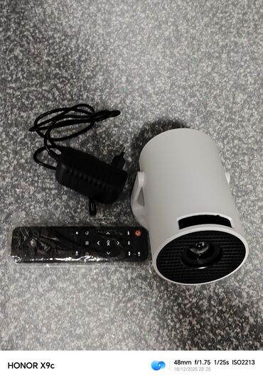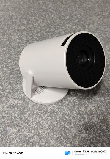 Mini portativ proyektor - Kompakt silindrik dizayn, 360° bucaq üçün tənzimlənən dayaq. - İdarəetmə üçün pult daxildir. - Arxa paneldə girişlər: HDMI, USB-A, MicroSD (TF) kart yeri, qulaqcıq/aux 3....