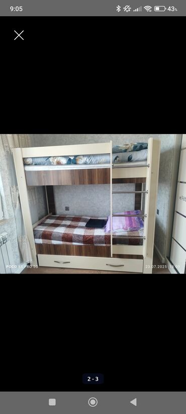 - Üst və alt yataq: birnəfərlik ölçüdə, təhlükəsizlik üçün üst mərtəbədə qoruyucu bort