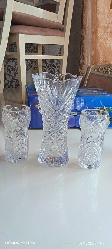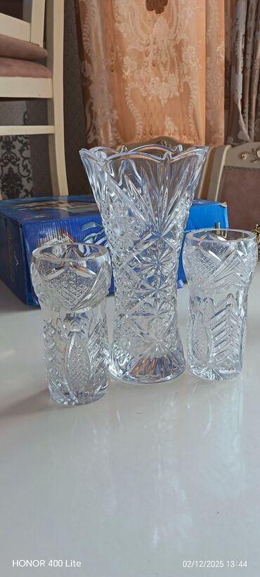 Çexoslavakiya xrustalı vazalar köhnənin ideal vəziyyətdə hamsı kutudan cxardılıb köhnənin mallidı, xrustalı təm təbii 1 ədəd 25 sm - 20 azn