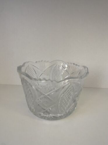 Kəllə-kəsik əl işi kəsmə qedimi xeustal guldan cox agir guldandirqedimi temiz xrustaldir - Material: qalın, şəffaf kristal şüşə - Dizayn: dərin kəsmə ornamentlər, romb və rozet motivləri; işıqda g...
