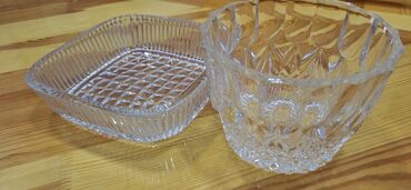 Kəsmə naxışlı şüşə şirniyyat/cem qabı dəsti - Material: qalın, şəffaf şüşə (kristal üslublu kəsmə ornamentlər) - Forma: dalğalı kənar, dərin kasa tipli - Təyinat: şirniyyat, konfet, quru meyvə, qə...