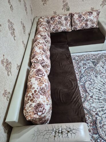 - Yastıqlar: iri ölçülü, çıxarılan, çiçək naxışlı parça üzlü (bir neçə ədəd)