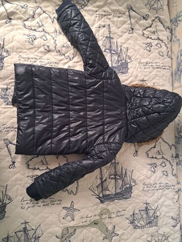 Uşaq üçün ikiüzlü qış gödəkçəsi - Rəng: şampan/boz-qızılı (parlaq metalik) və iç üzü krem rəngli süni kürk - 2 tərəfli geyinmə imkanı: bir tərəfi su-ötürməyən parlaq kumaş, digər tərəfi qalın tükl...
