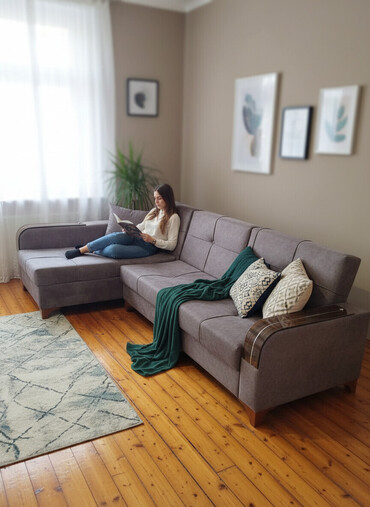 - Quruluş: sağdan-soladək L forması, bir tərəfi uzanma üçün geniş şezlonq hissəli.