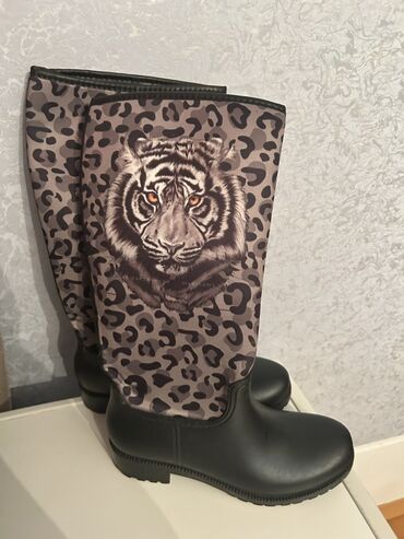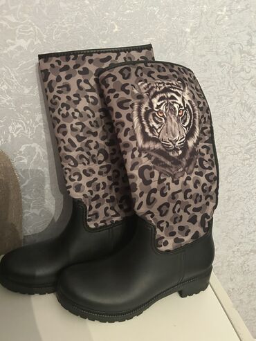 Stil və funksionallığı birləşdirən, diqqətçəkən animal-printli yağış çəkmələri.