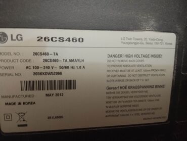 LG 26CS460 – 26 düymlük LCD TV Xüsusiyyətlər: - Ekran: 26", geniş format - Model: LG 26CS460 (istehsal: May 2012, Made in Korea) - Rəng: Qara, stendlə birlikdə - Giriş/çıxışlar: 1x HDMI, 1x USB, A...