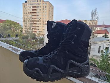 Hərbi ayaqqabı – təmiz dəri, rahat və münasib qiymət! - Material: təmiz, yüksək keyfiyyətli dəri və möhkəm tekstil panellər - Rəng: qara - Dizayn: klassik hərbi üslub, yüksək boğaz, möhkəm bağlama...