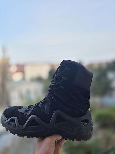 43 le barter ederem.Tamamilə qara rəngdə, bağcıqlı bağlama sisteminə malik kişi taktiki botları. Botlar möhkəm, qalın altlığa və yüksək bilək dəstəyinə malikdir. Altlıqdakı dərin protektorlar müxtə...