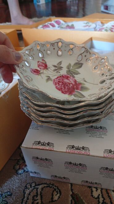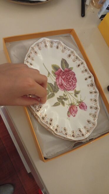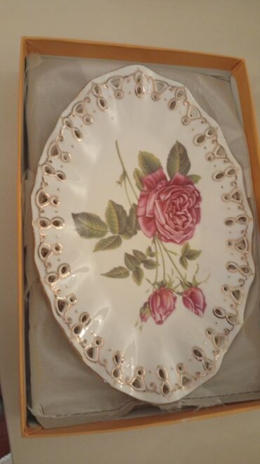 - Böyük oval boşqablar (ažur kənarlı, çiçəkli)