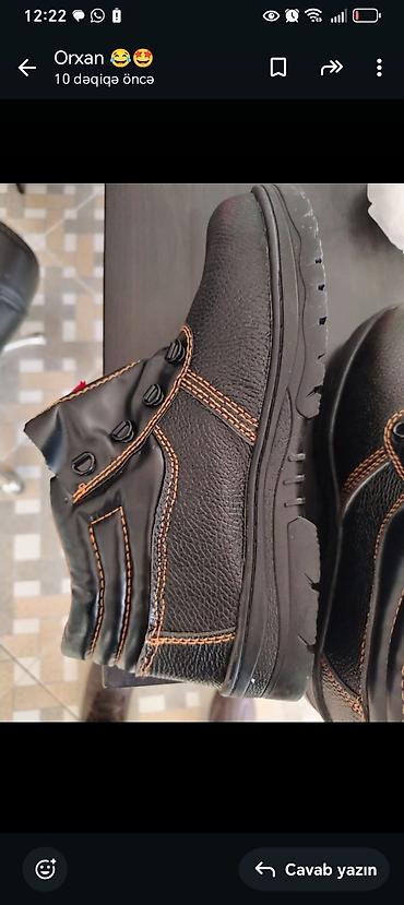 - Model: qara rəng, qısa boğazlı iş/ təhlükəsizlik ayaqqabısı