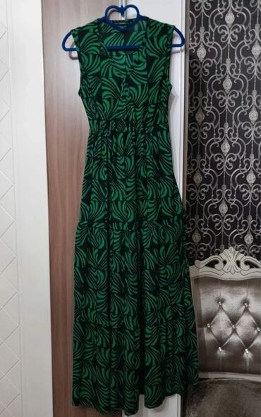 Məhsul: Zara qadın paltarı - Rəng: Parlaq yaşıl/emerald - Model: Plisse (büzgülü) maxi paltar - Yaxa: V-kəsim, öndən qatlanmış sarafan tipli görünüş - Qol: Orta uzunluqda, plisse fakturalı geniş q...