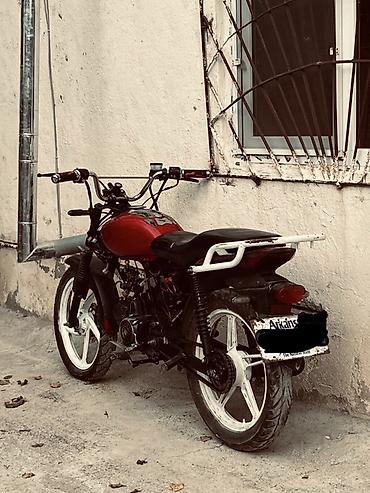 Qırmızı rəngli şəhər tipli motosiklet - Tip: Naked/Street motosiklet - Rəng: Parlaq qırmızı yanacaq çəni, qara çərçivə və detallar - Mühərrik: 1 silindrli benzin mühərriki (hava ilə soyutma), karb...