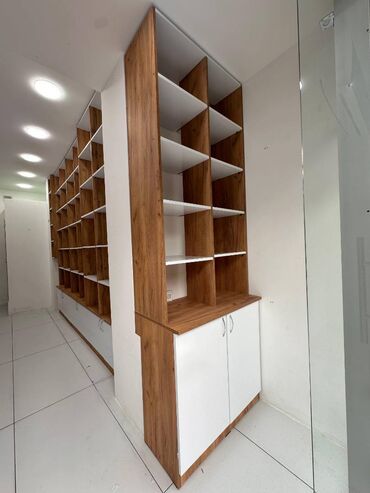 - Bölmələr: çoxsaylı bərabər ölçülü hüceyrələr – ayaqqabı, aksesuar, kosmetika, kitab və ya tekstil kimi malların vitrinləşdirilməsi üçün uyğundur