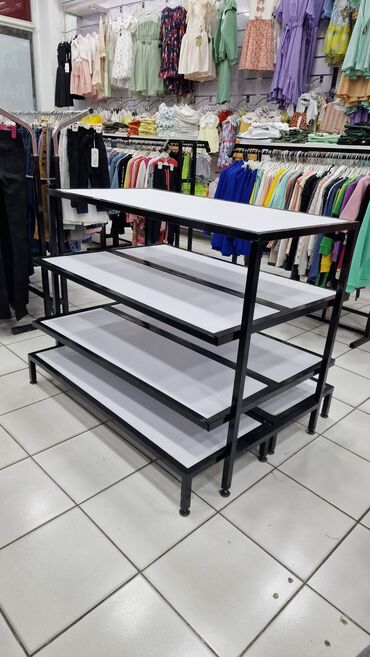 Mağaza vitrin rəfi – 4 mərtəbəli orta ada tipli stend, hərəkətli rəflər (3 əd mövcuddur). Hündurlük 90 sm/ En 60 sm/ Uzunluq 120 sm
