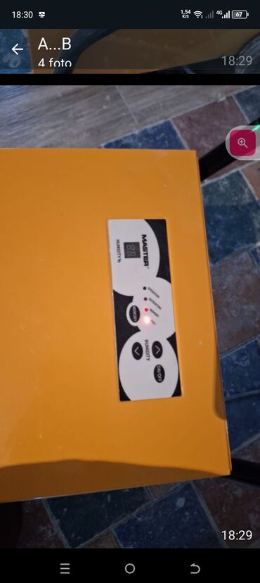 - İdarəetmə paneli: rəqəmsal displey, rütubət faizini göstərir; HUMIDITY düymələri ilə rütubət səviyyəsi tənzimlənir; ON/OFF