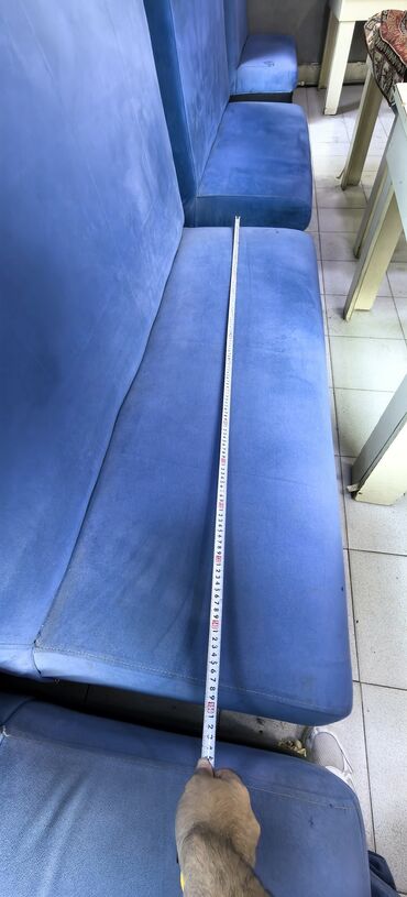 - Material: yumşaq məxməri tipli parça üzlük, alt hissə dəri/plastik qoruyucu bant, taxta ayaqlar