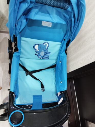 Uşaq arabası – mavi rəng, yüngül və rahat - Geniş oturacaq və arxalığa malik, zolaqlı yumşaq oturacaq örtüyü - Beşnöqtəli təhlükəsizlik kəməri - Böyük tənzimlənən günlüyə/sipərə malik üst hissə - ...