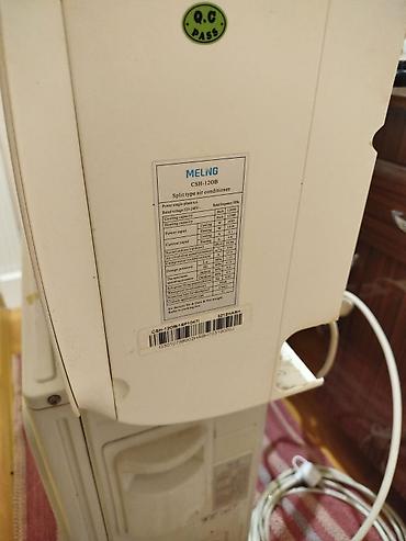 MELING markalı bu 12 min BTU güclü split kondisioner mənzil və kiçik ofis otaqları üçün uyğun soyutma və isitmə təmin edir. Enerji sərfi qənaətcil dəyərlərdədir, səssiz işləmə rejimi var. Şəkillərdə məhsulun real görünüşü və texniki etiketləri göstərilib. qazi var pultu bar col ve ic krasteyni var cuzi endirim olunacaq tecili satilir