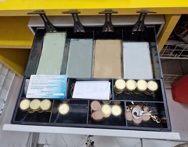 Metal kassir çekmecəsi (cash drawer) - Material: metal gövdə, sürüşkən çekmece - Rəng: ağ üst panel, qara daxili - Bölmələr: sikkələr üçün çoxsaylı kiçik hücrələr, kağız pullar üçün ayrıca uzun bö...