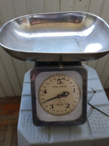 Mətbəx, bazar tezgahı, kiçik dükan və ya ev istifadəsi üçün uyğun, sadə və etibarlı analoq ölçmə qurğusu. Marka: A2 (cadranda qeyd olunub). CAP 5kg/GRAD 20g.
