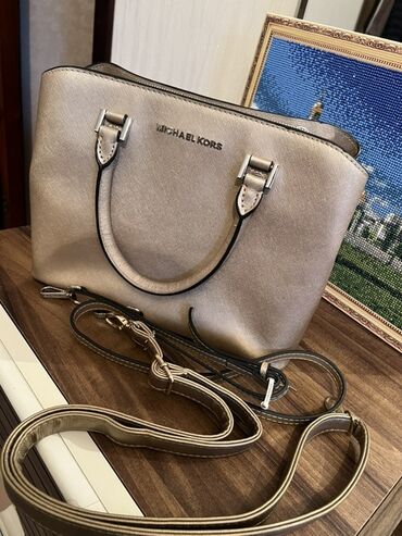 Qadın çanta kolleksiyası - Model 1: Qəhvəyi tonlarda mini çiyin çantası. Qarışıq teksturalı gövdə (hamar material + süet görünüşlü hissələr), qızılı rəngli ön emblem və mıxlı bağlama. Kompakt form...