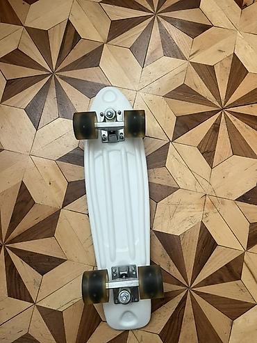 Plastik kruizer skeytbord - Ölçü: təxminən mini/kruizer tipli lövhə (kompakt şəhər gəzintisi üçün). - Gövdə: möhkəm plastik platforma, yuxarı hissədə sürüşməyə qarşı teksturalı naxış və iki ədəd d...