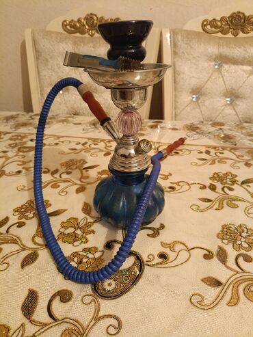 Nargilə dəsti - Şüşə kolba: iri həcimli, opal/iridescent effektli şüşə kolba, stabil geniş dib. - Gövdə: metaldan hazırlanmış, ortası spiral qoruyucu ilə bəzədilmiş gövdə; yan tərəfdə klapan. - Ba...