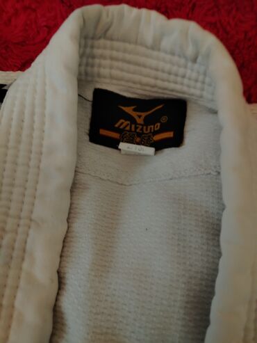 Mizuno judo gi (kimono) dəsti - Rəng: ağ - Brend: Mizuno (şalvarın balaq hissəsində və jaketin ətəyində loqo nişanları) - Komplekt: üst ceket (gi jaketi) + şalvar - Material: qalın, toxumalı parça...