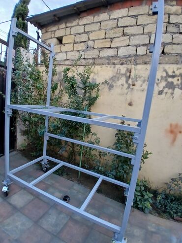 Paslanmayan metaldan hazırlanmış, təkərli asma/raf karkasları. - Material: galvanizli/paslanmayan metal profil - Modul konstruksiya: deşikli şaquli profillər sayəsində hündürlüyü və aksesuar yerlə...