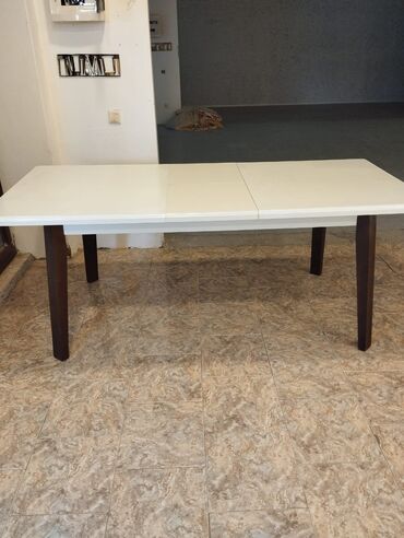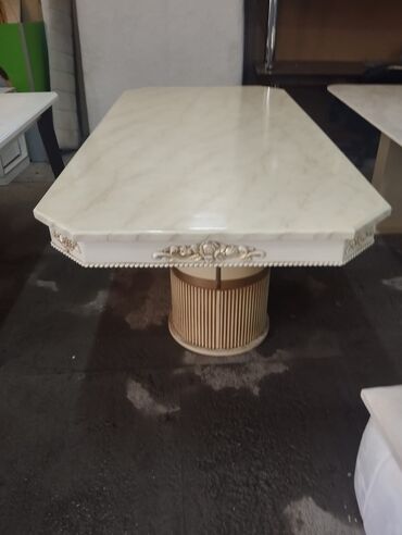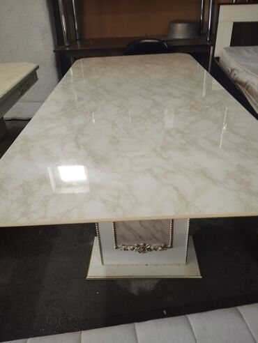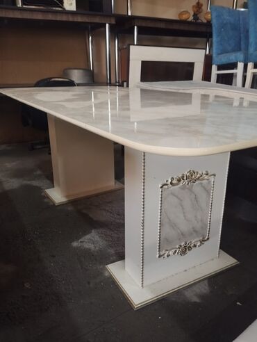 Masa – klassik dizaynlı, mərmər naxışlı parlaq stol üstü ilə