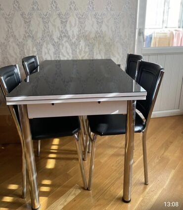 Mətbəx üçün, Yeni, Açılmayan, Dördbucaq masa, 4 stul