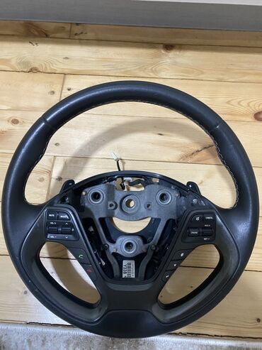 Kia Optima sükanı (2011–2014) - Orijinal Kia emblemi və hava yastığı qapağı ilə - Multistyring funksiyaları: səs tənzimləmə, zəng qəbul/bitirmə, kruiz-kontrol və menyu düymələri - 3-şüalı dizayn, ...