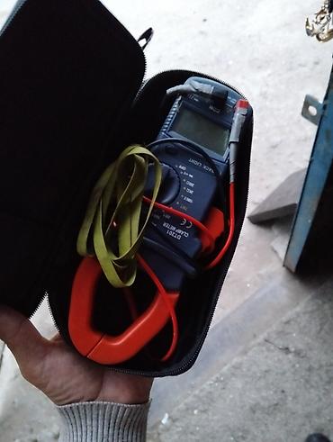 Rəqəmsal kleş ölçü cihazı (DT-201 modelinə bənzər) – çoxfunksiyalı multimetrlə birlikdə daşıma futlyarında.