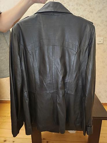 Model: İkiqat düyməli, trenç/plaş üslubunda dərı gödəkçə