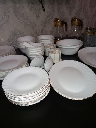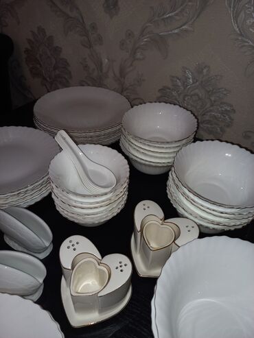 121 parça 12 nəfərlik yemək+çay+kofe dəsti. Yenidir səliqəli şəkildə qutusunda. Heç işlənməyim. Alış qiyməti 440 azn. İstəyən olsa qiymətdə endirim etmək olar.