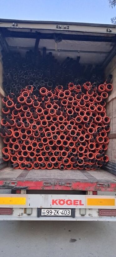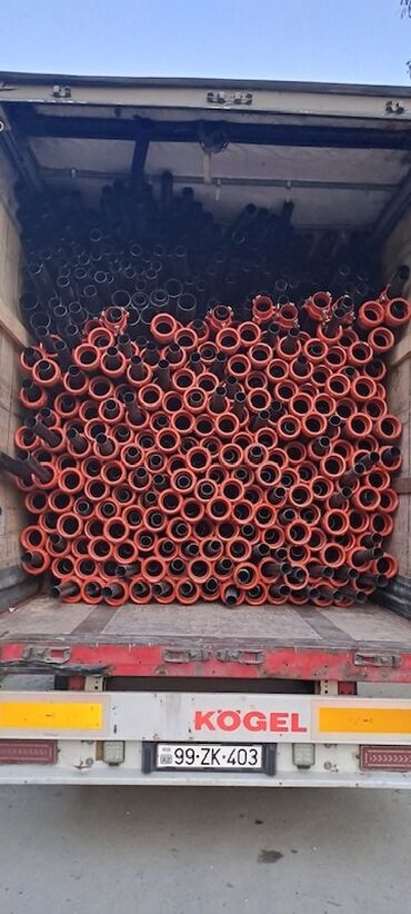 Qara rəngli, narıncı ucluqları olan borular. Kanalizasiya və ya su sistemləri üçün uyğundur. Möhkəm materialdan hazırlanıb, uzunömürlüdür.
