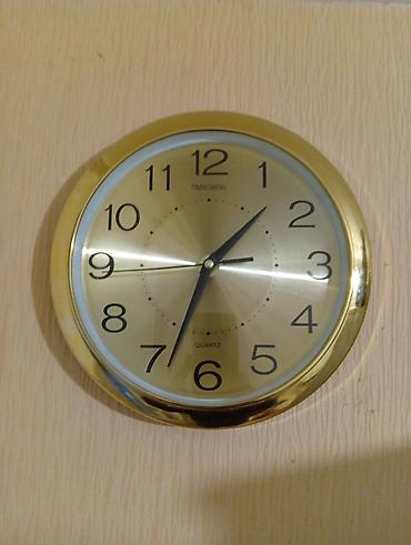 1) Divar saatı – CHANGSHENG markası, kvars mexanizmli. Qızılı rəngdə korpus və çərçivə, iri oxlar və asan oxunan 1–12 rəqəmlər. Sakit işləmə, yuvarlaq forma.
