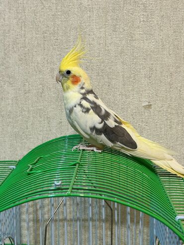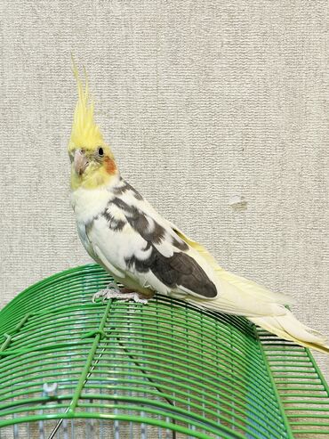 Məhsul: Nimfa tutuquşusu (Cockatiel) qəfəsdə Təsvir: - Gözəl sarı çubuqlu toqqa (toppuz) və yanaqlarda narıncı ləkələrə sahib nimfa tutuquşusu. - Lütino lələk quruluşu, uzun quyruq, - - Evdə saxla...