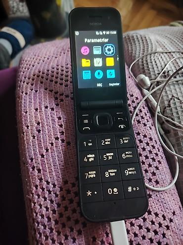 Nokia kənardan açılan (flip) mobil telefon Xüsusiyyətlər: - Rəng: qara və metalik çərçivə - İki ekranlı flip dizaynı: xarici parlaq panel, içəridə rəngli ekran - Fiziki düyməli klaviatura - Arxa k...