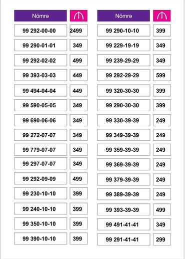 Nömrə: ( 099 ) ( 7330202 ), Yeni