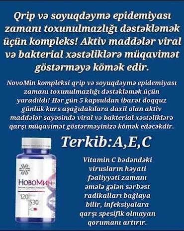 Novomin kompleksi orqanizmin bütün xəstəliklərdən, qrip, soyuqdəymə və hətta xərçəngdən müdafiəsi üçün patentli məhsuldur. Bu kompleks qrip və soyuqdəymə epidemiyası zamanı toxunulmazlığı dəstəkləmək üçün hazırlanmışdır. Gündə 5 kapsuldan ibarət doqquz günlük kurs viral və bakterial xəstəliklərə qarşı müqaviməti artırmağa kömək edir. Uşaqlar və böyüklər üçün bütün sağlam hüceyrələrin müdafiəsini təmin edir. Aktiv maddələr viral və bakterial xəstəliklərə qarşı müqavimət göstərməyə kömək edir. Tərkibində A, E və C vitaminləri var. Xüsusilə, C vitamini bədəndə virusların həyati fəaliyyəti zamanı əmələ gələn sərbəst radikalları bağlayır və infeksiyalara qarşı qeyri-spesifik qorumayı artırır.