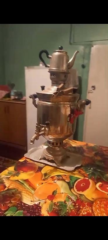 Çay dəmləmək, ev və bağ şəraitində süfrə üçün uyğun, iri həcmli klassik samovar komplekti. Retro üslub, kolleksiya və gündəlik istifadə üçün yararlı aksesuar.