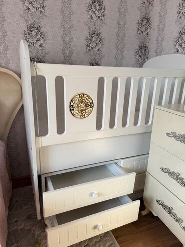 Usaq ùçùn çarpayi, 3-5 yaşa qeder, yellenir, altinda cəkməcəsi var, əla veziyyetdedi, cox az işlenib, 280 manat