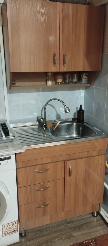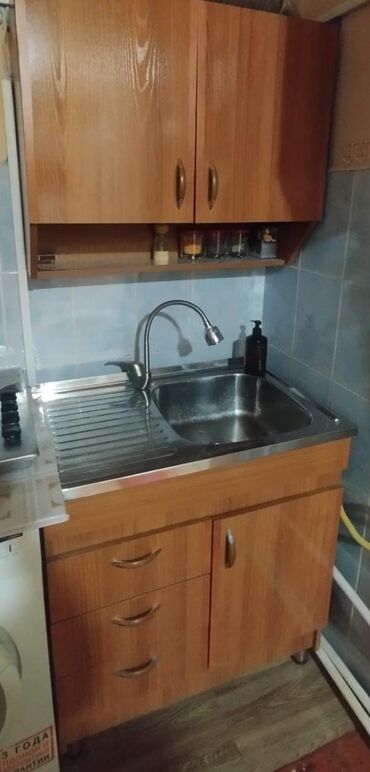 Mətbəx üçün lavabo dolabı - Material: laminat korpus, ağ içlik; qapılar taxta teksturalı dekorla - Üst hissə: paslanmayan poladdan birgözlü lavabo və sağ tərəfdə damcılıq sahəsi (quraşdırma üçün k...